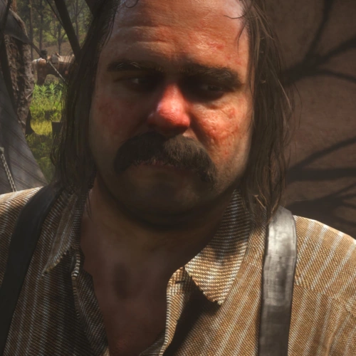 Simon Pearson is the camp cook and butcher for the Van der Linde gang in Red Dead Redemption 2, a former sailor who manages food, supplies, and leather crafting at camp and provides comic relief with his loud, blustering personality. He is voiced by Jim Santangeli.